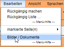 Über Bearbeiten - Bilder / Dokumente gelangen Sie zu einem Dialog, der Ihnen links bereits geladene Bilder zeigt, und mittig die Option, Dateien hochzuladen.
